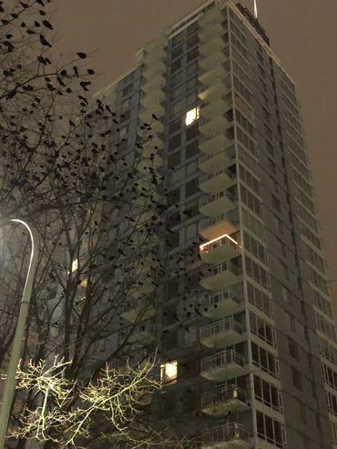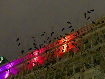 May-July: the only crows remaining in the city center appear to be local residents (i.e. downtown is their territory or non-breeding adults that come into town at night)
